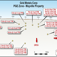 Some high grade drill results have been drilled by Grid Metals. This was a new discovery made by the Company in 2011. The PGE Zone is a potential new source of feed for the Makwa Mayville Project. The higher price of palladium and the lack of bona fide PGE exploration properties make the PGE Zone a valuable asset for Grid Metals. More drilling is planned in the future .
